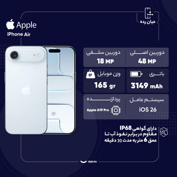 گوشی موبایل اپل مدل iPhone Air ZAA eSim ظرفیت 256 گیگابایت و رم 12 گیگابایت - نات اکتیو