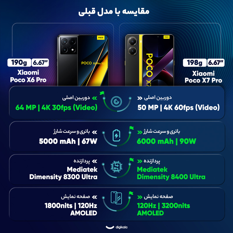 گوشی موبایل شیائومی مدل Poco X7 Pro ظرفیت 256 گیگابایت و رم 8 گیگابایت - گلوبال